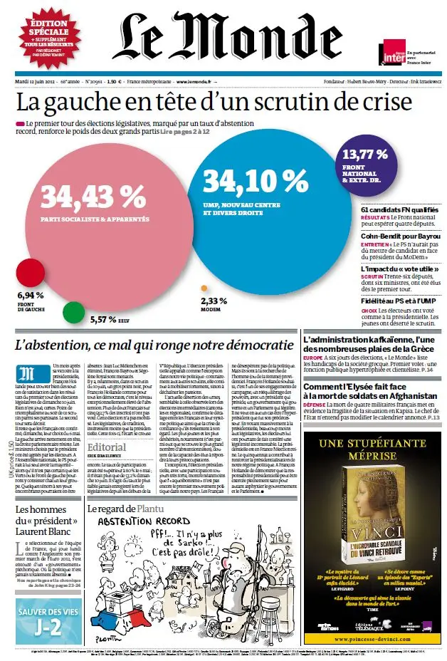 Le Monde et Supplément Législatives du Mardi 12 Juin 2012