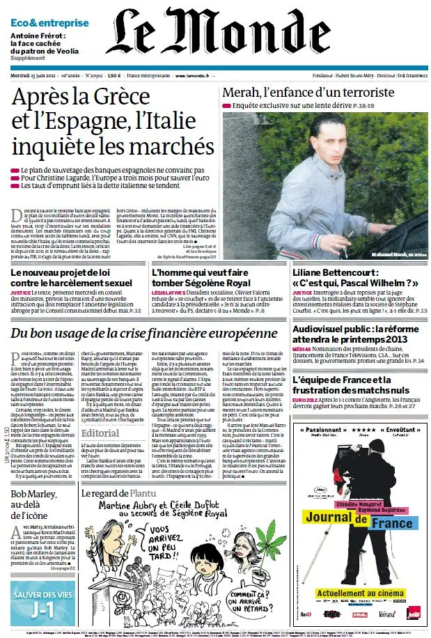 Le Monde et Supplément Economique du Mercredi 13 Juin 2012