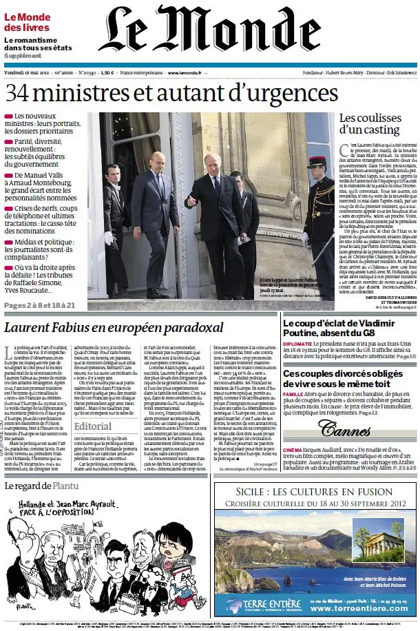 Le Monde et Supplément Livres du Vendredi 18 Mai 2012