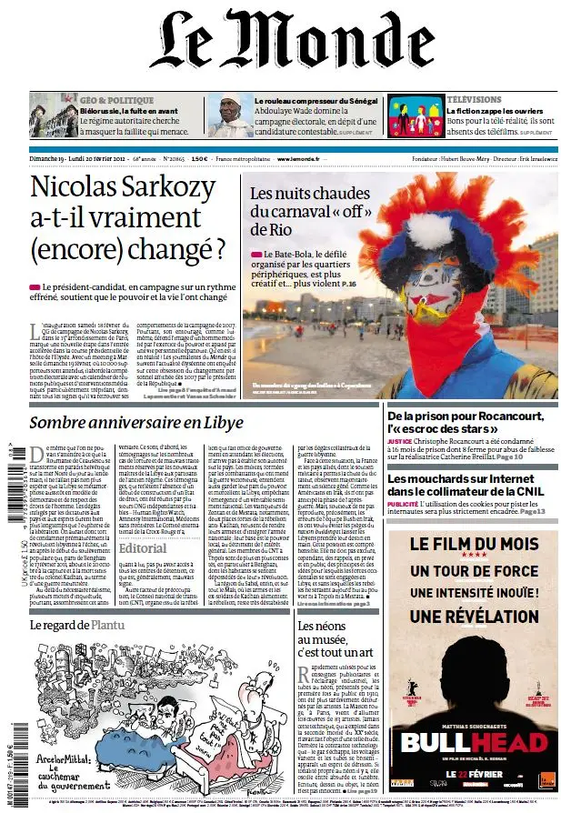Le Monde et Suppléments du Dimanche 19 et Lundi 20 Février 2012