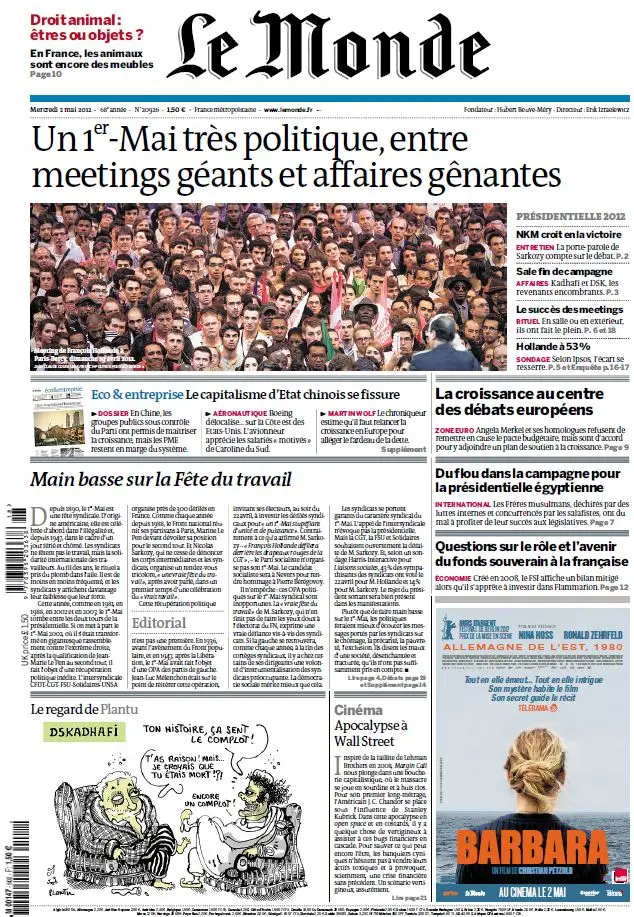 Le Monde et Supplément Economique du Mardi 1er Mai 2012