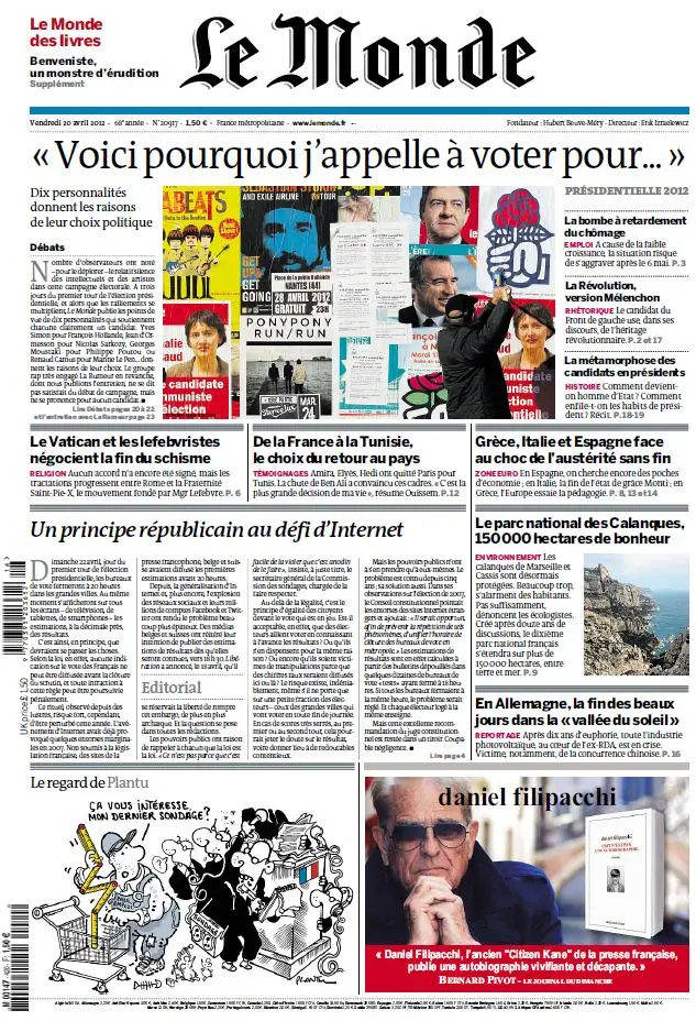 Le Monde et Supplément Livres du Vendredi 20 Avril 2012