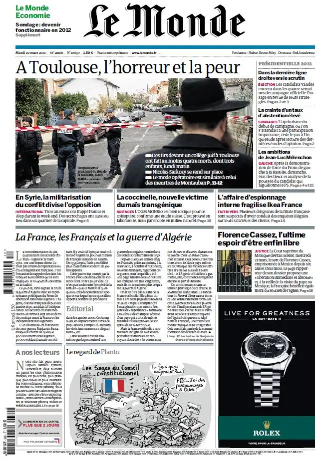 Le Monde et Supplément Economique du Mardi 20 Mars 2012