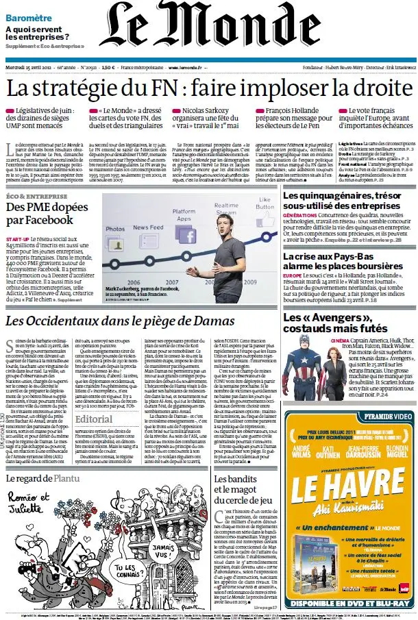 Le Monde et Supplément Economique du Mercredi 25 Avril 2012