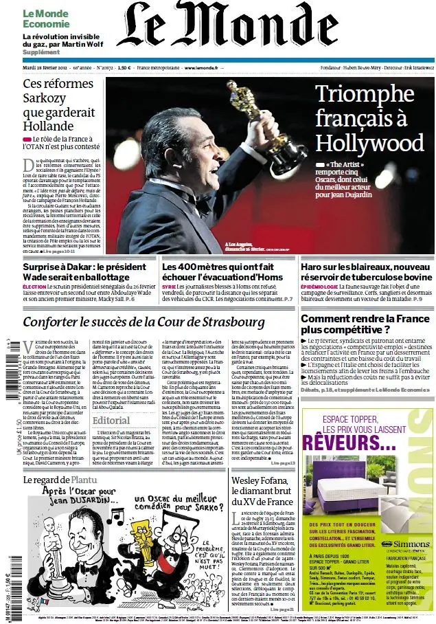 Le Monde et Supplément Economique du Mardi 28 Février 2012