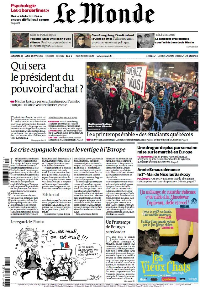 Le Monde et Suppléments du Dimanche 29 et Lundi 30 Avril 2012