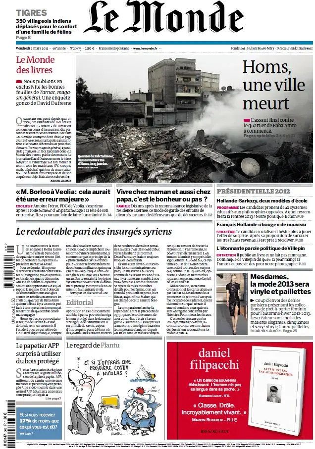 Le Monde et Supplément Livres du Vendredi 2 Mars 2012