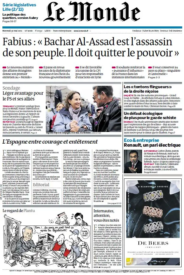 Le Monde et Supplément Economique du Mercredi 30 Mai 2012