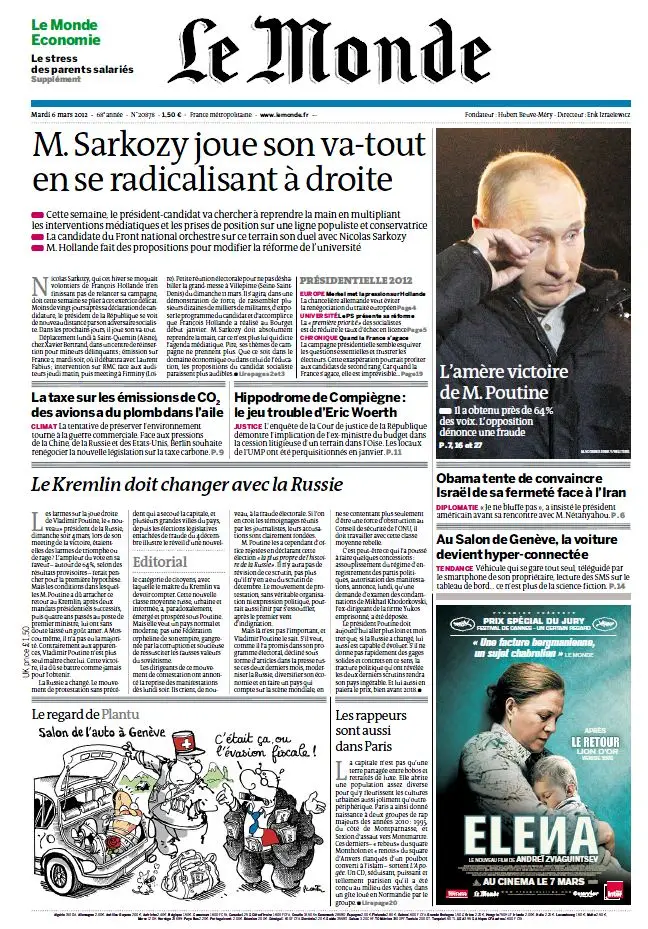 Le Monde et Supplément Economique du Mardi 6 Mars 2012