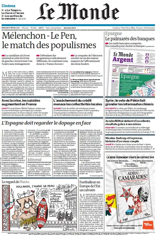 Le Monde et Supplément Argent du 08 Février 2012