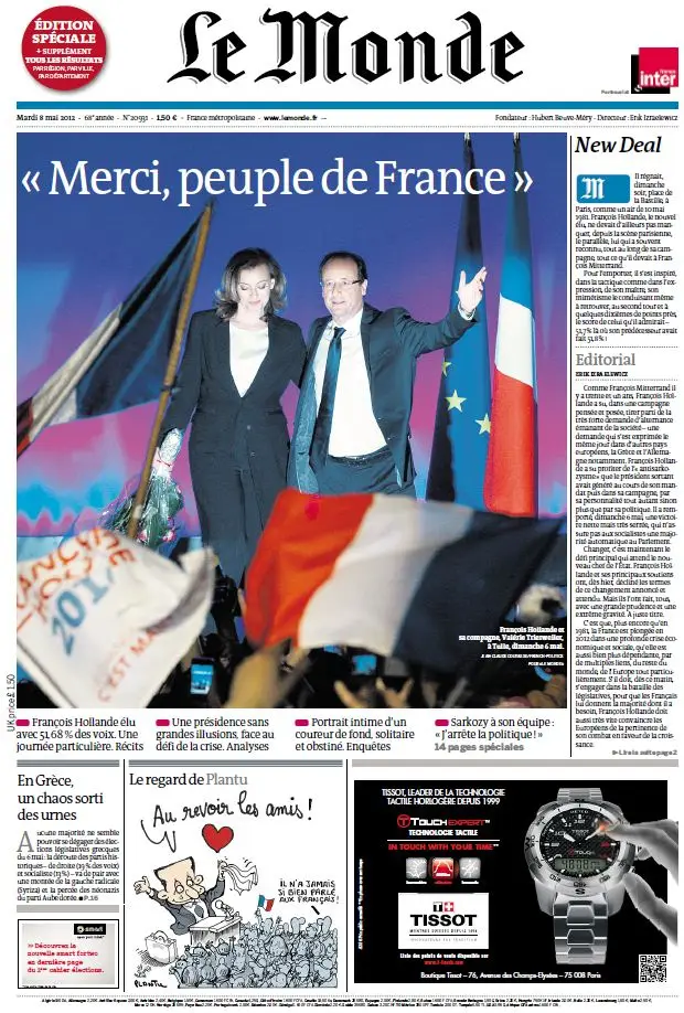 Le Monde et Supplément Présidentielles du Mardi 8 Mai 2012