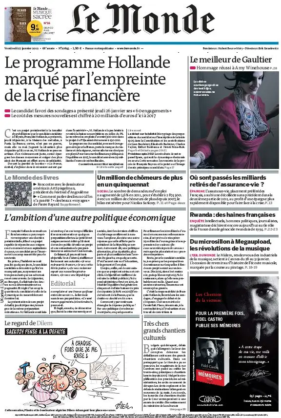 Le Monde et Supplément Livres du 27 Janvier 2012