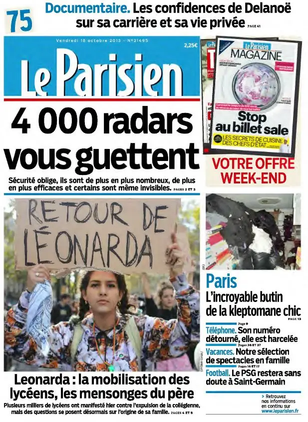 Le Parisien + Journal de Paris du Vendredi 18 Octobre 2013