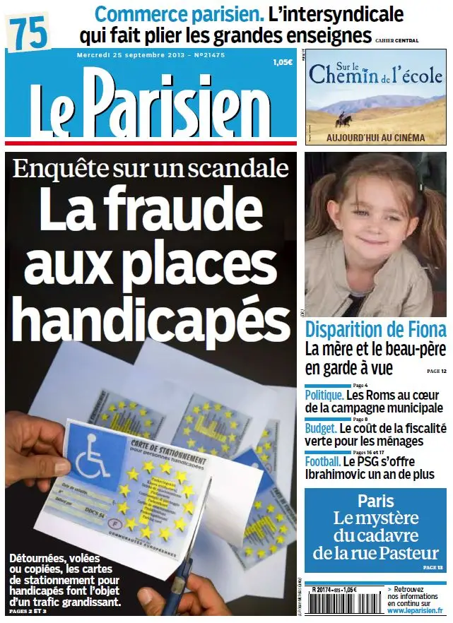 Le Parisien + Journal de Paris du Mercredi 25 Septembre 2013
