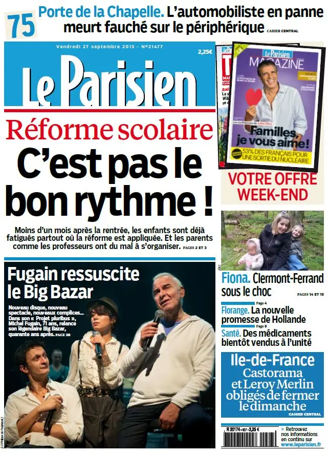Le Parisien + Journal de Paris du Vendredi 27 Septembre 2013