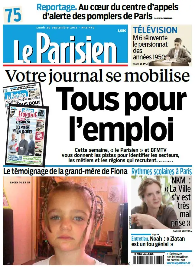 Le Parisien + Journal de Paris du Lundi 30 Septembre 2013