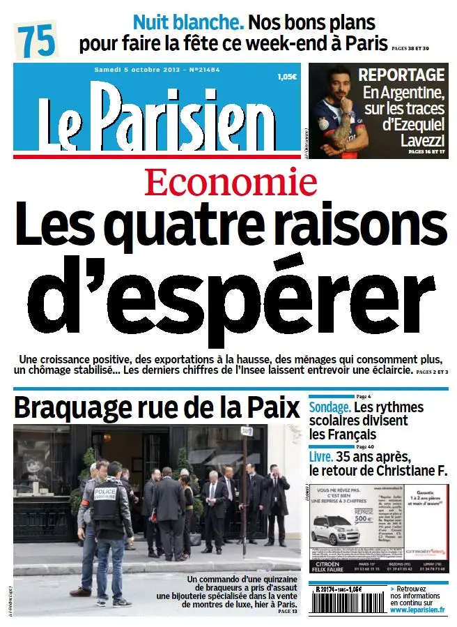 Le Parisien + Journal de Paris du Samedi 5 Octobre 2013