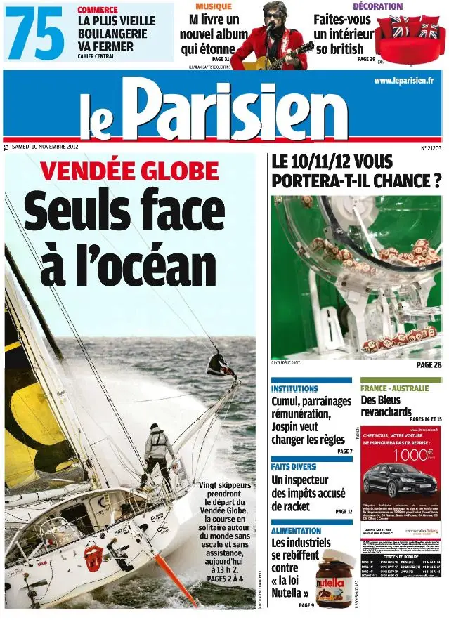 Le Parisien + Cahier Paris du Samedi 10 Novembre 2012