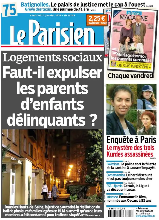 Le Parisien + Cahier Paris du Vendredi 11 Janvier 2013