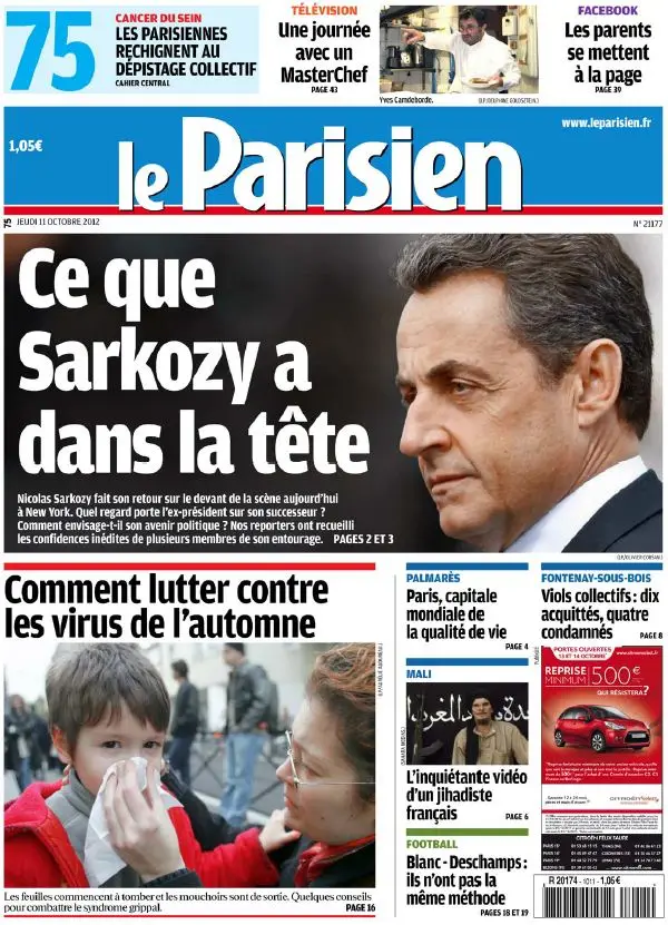 Le Parisien + Cahier Paris du Jeudi 11 Octobre 2012