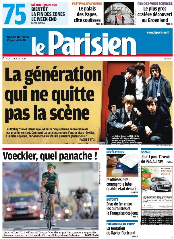 Le Parisien & Cahier Paris du Jeudi 12 Juillet 2012