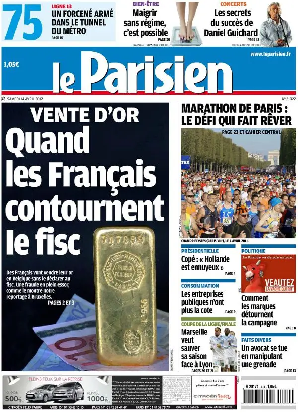 Le Parisien + Cahier Paris du Samedi 14 Avril 2012