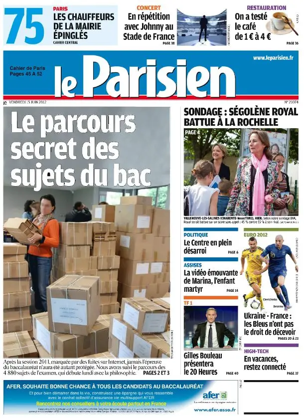 Le Parisien + Cahier Paris du Vendredi 15 Juin 2012