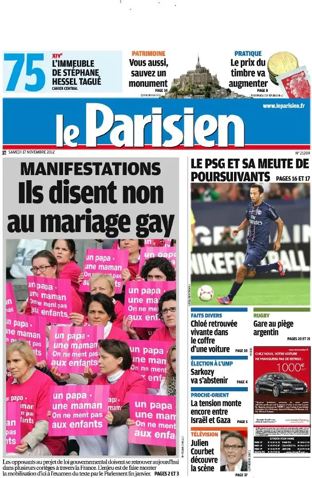 Le Parisien + Cahier Paris du Samedi 17 Novembre 2012
