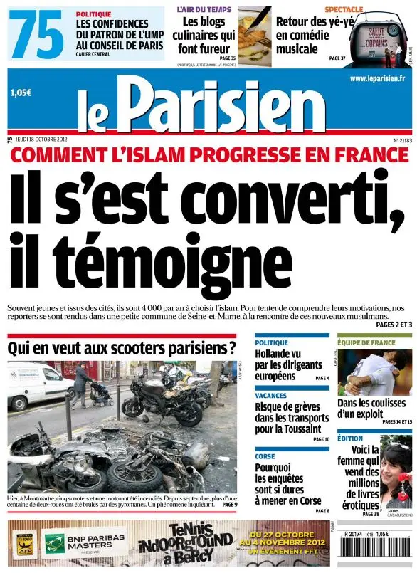 Le Parisien + Cahier Paris du Jeudi 18 Octobre 2012
