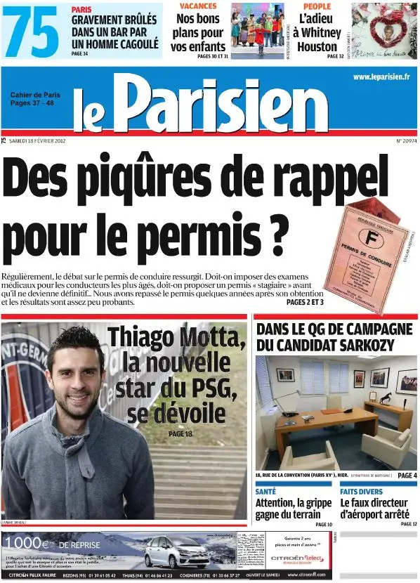 Le Parisien + Cahier Paris du Samedi 18 Février 2012