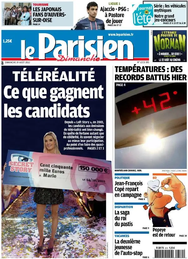 Le Parisien du Dimanche 19 Aout 2012