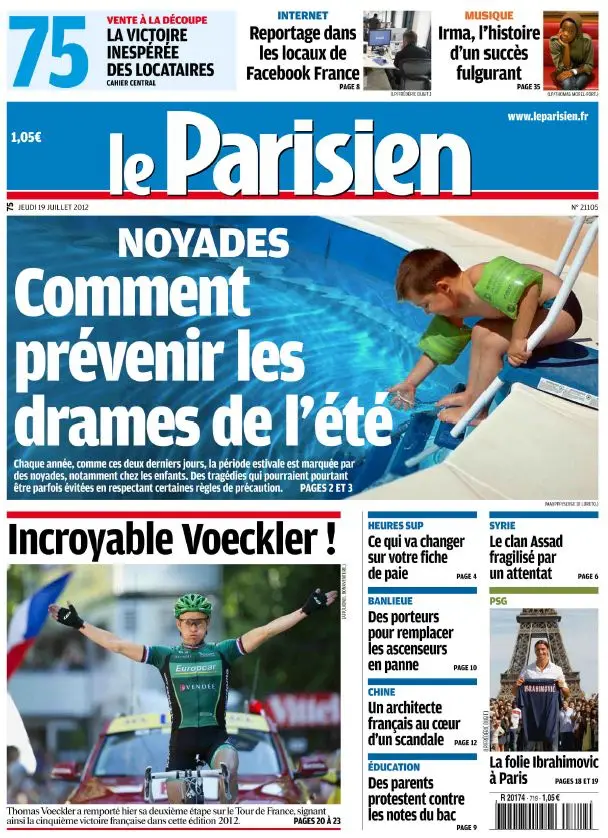 Le Parisien & Cahier Paris du Jeudi 19 Juillet 2012