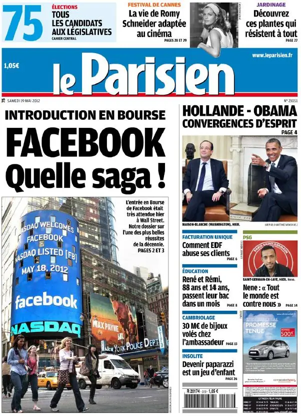 Le Parisien + Cahier Paris du Samedi 19 Mai 2012