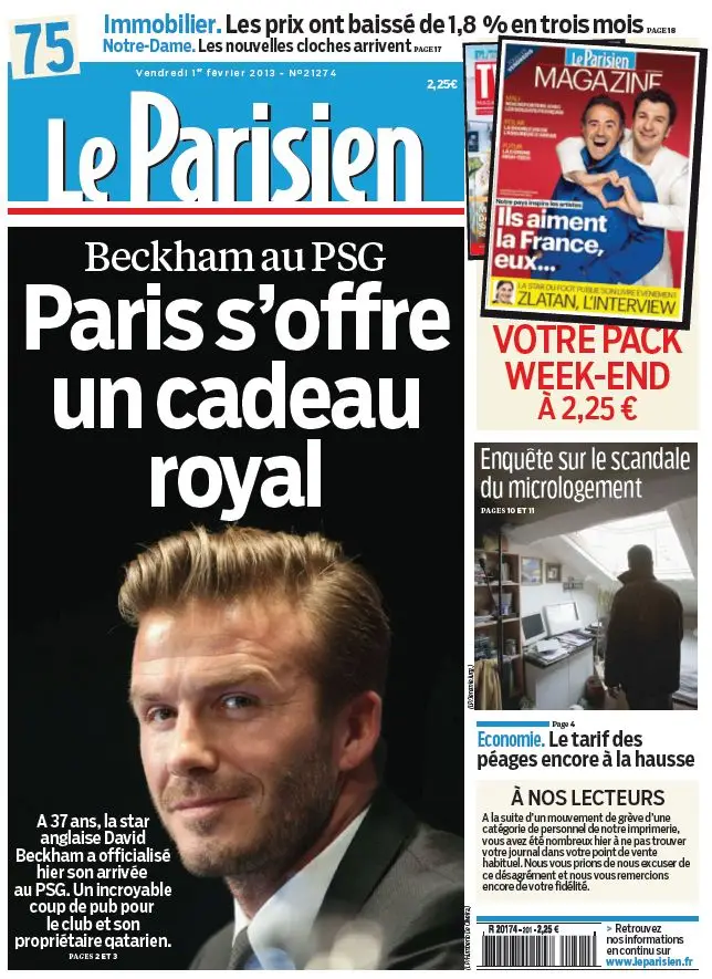 Le Parisien + Cahier Paris du Vendredi 1er Février 2013