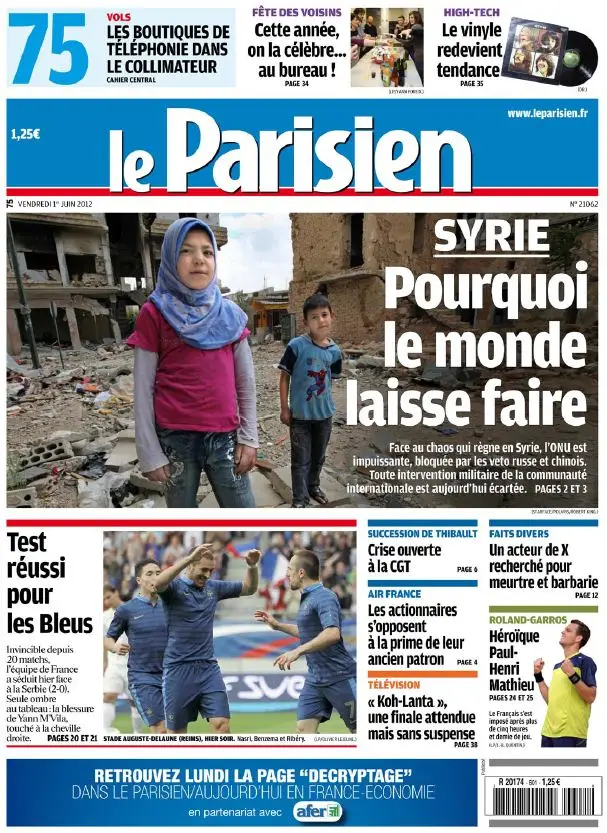 Le Parisien + Cahier Paris du Vendredi 1er Juin 2012