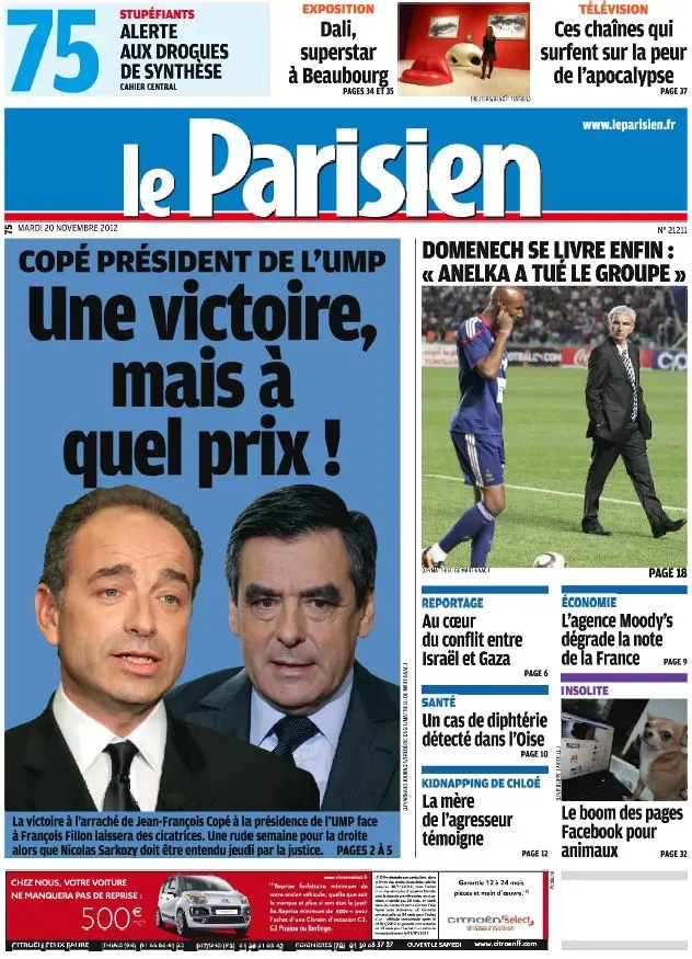 Le Parisien + Cahier Paris du Mardi 20 Novembre 2012
