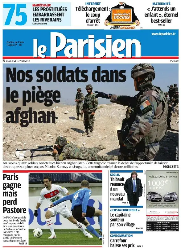 Le Parisien + Cahier Paris du 21 Janvier 2012