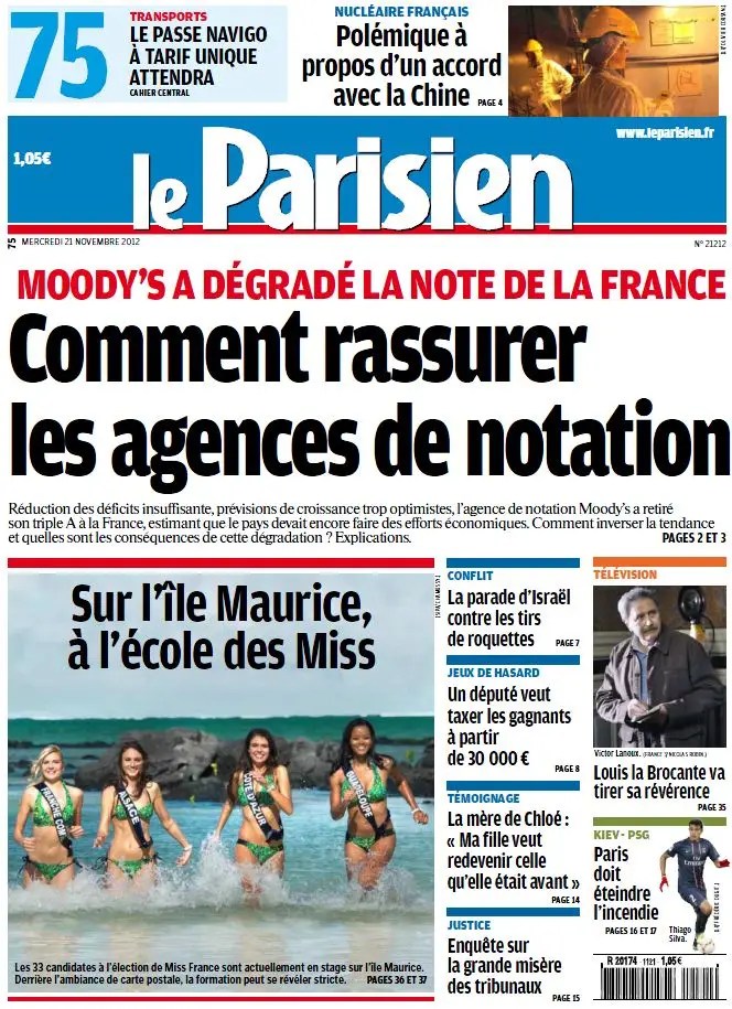 Le Parisien + Cahier Paris du Mercredi 21 Novembre 2012