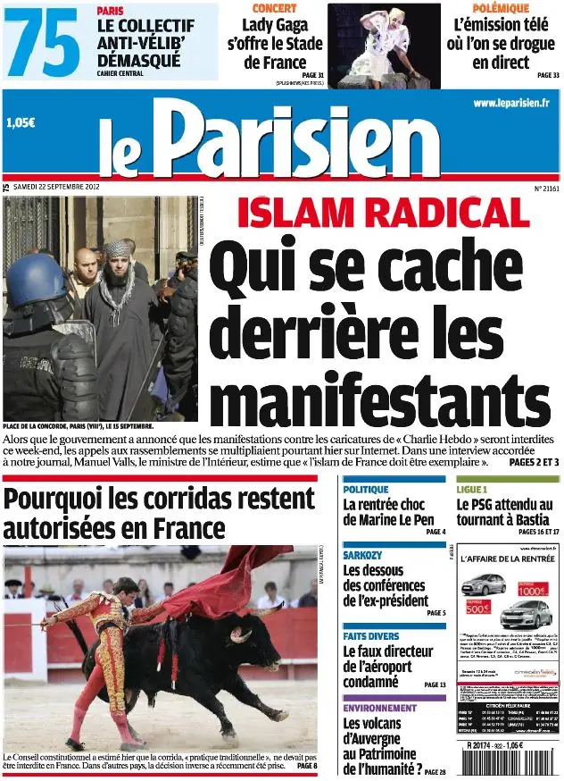 Le Parisien + Cahier Paris du Samedi 22 Septembre 2012