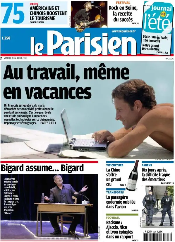 Le Parisien + Cahier Paris du Vendredi 24 Aout 2012