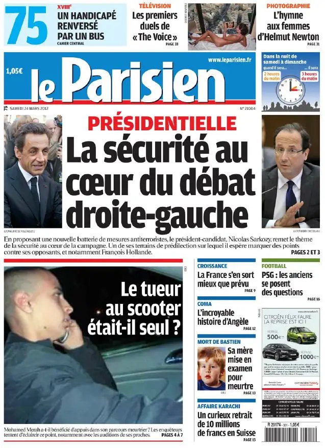 Le Parisien + Cahier Paris du Samedi 24 Mars 2012