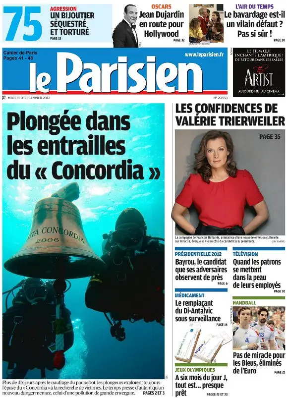 Le Parisien + Cahier Paris du 25 Janvier 2012