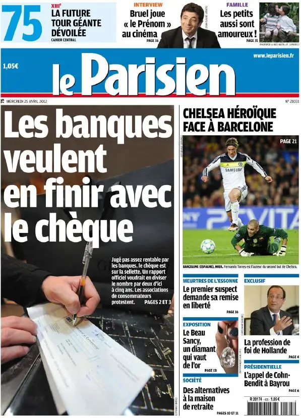 Le Parisien + Cahier Paris du Mercredi 25 Avril 2012