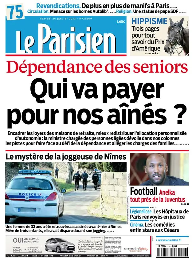 Le Parisien + Cahier Paris du Samedi 26 Janvier 2013