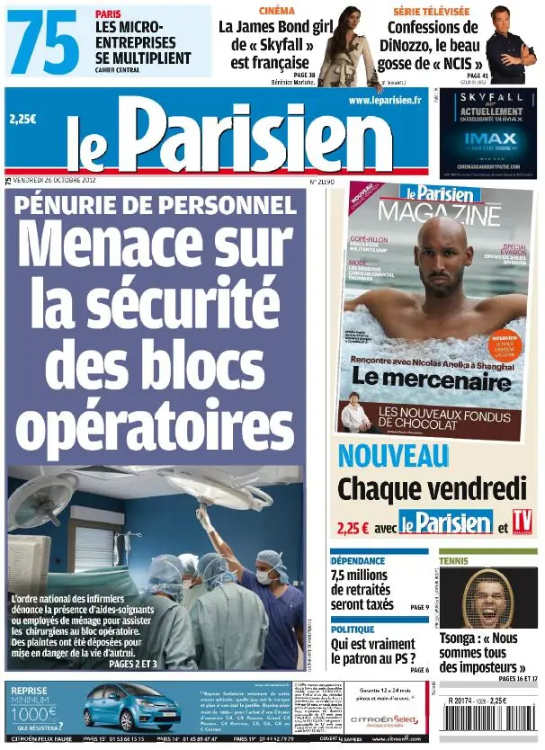 Le Parisien + Cahier Paris du Vendredi 26 Octobre 2012
