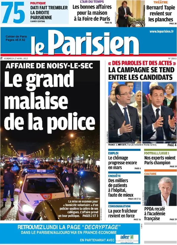 Le Parisien + Cahier Paris du Vendredi 27 Avril 2012