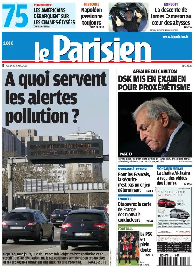 Le Parisien + Cahier Paris du Mardi 27 Mars 2012
