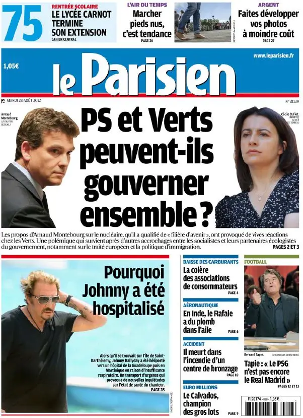 Le Parisien + Cahier Paris du Mardi 28 Aout 2012