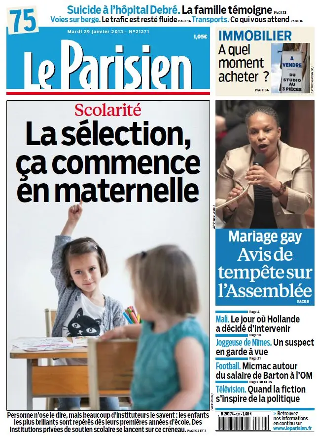 Le Parisien + Cahier Paris du Mardi 29 Janvier 2013
