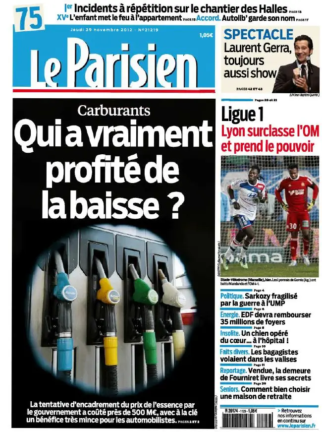 Le Parisien + Cahier Paris du Jeudi 29 Novembre 2012